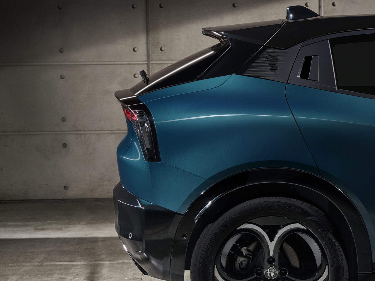 Saumattomasti Juniorin linjoihin sopivat takavalot korostavat urheilullista profiilia yhdessä Coda Tronca -muotoilun kanssa.
