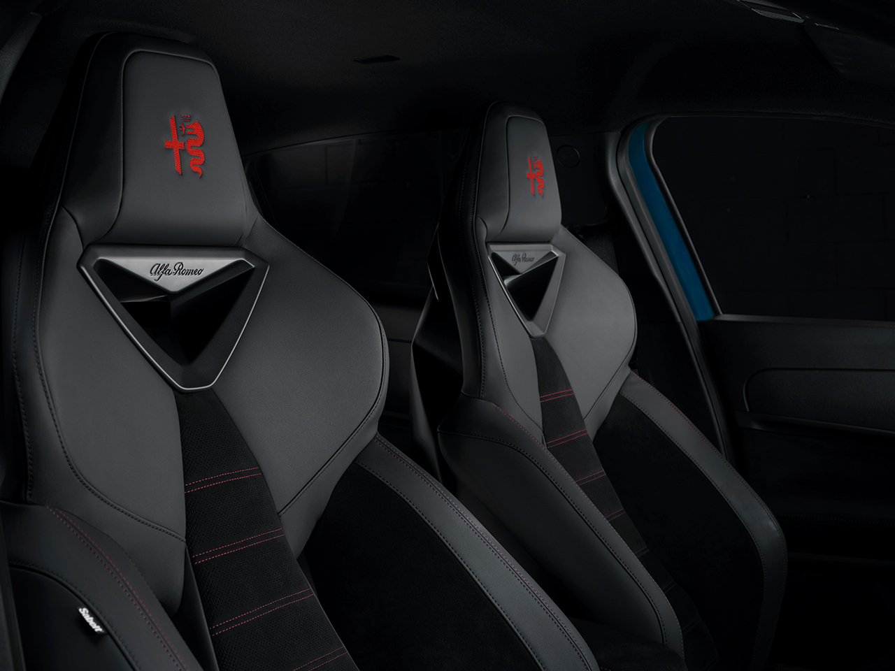 Biscione-symboli ja Alfa Romeolle tunnusomaiset pyöreät ilmansuuttimet ovat kunnianosoitus historiaan.